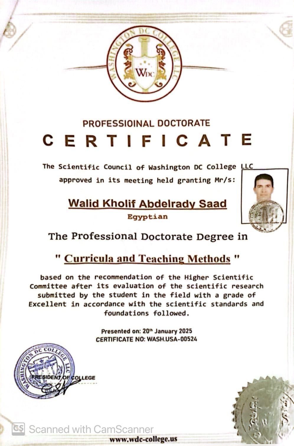 Walid Kholif Abdelrady Saad WASH.USA-00524